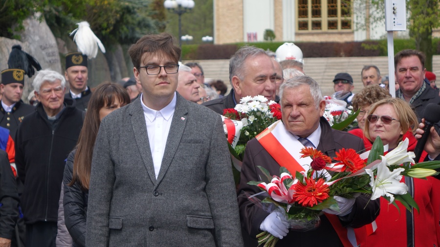 zakończeniu nabożeństwa delegacje złożyły kwiaty przed pomnikiem