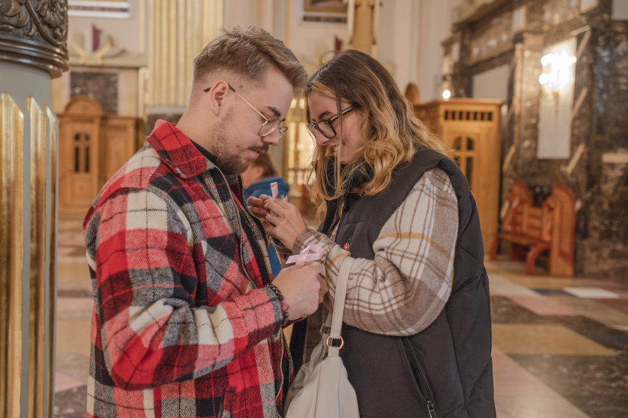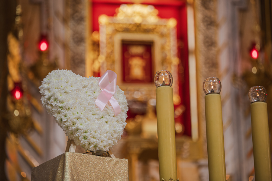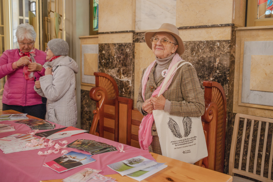 licheńskiej bazylice towarzyszył symbol „Amazonek”, czyli różowa wstążka, którą