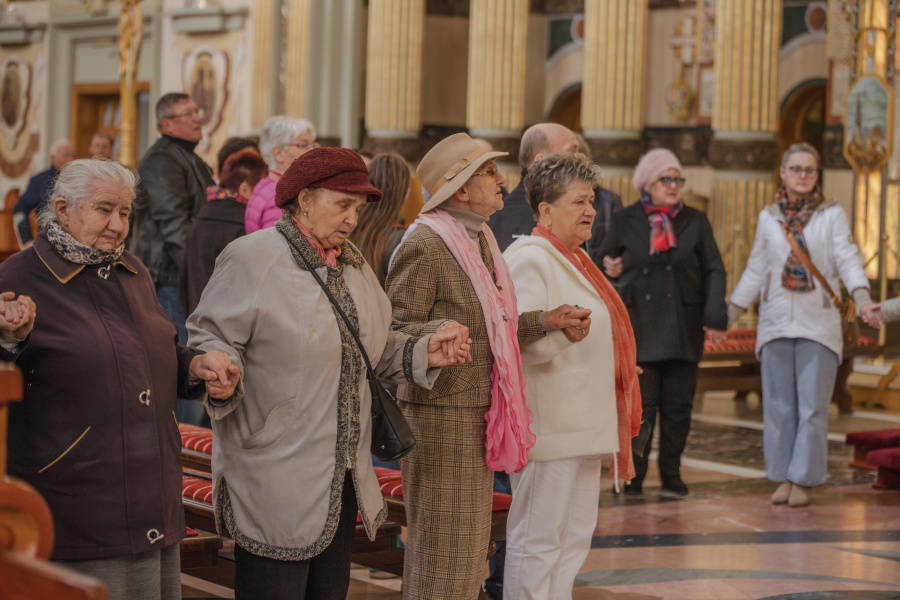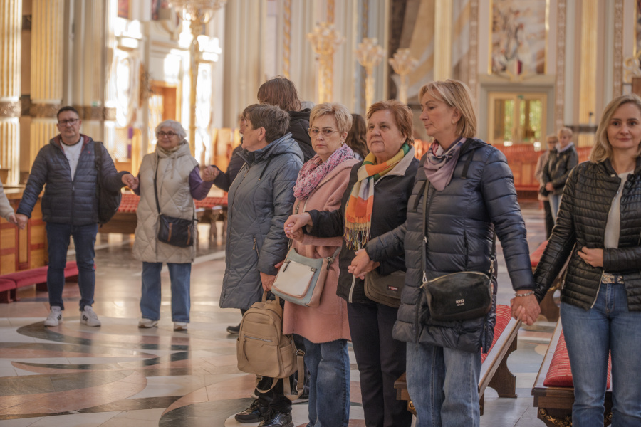 świętą wraz z wiernymi, wspólnie trzymając się za ręce, okazali