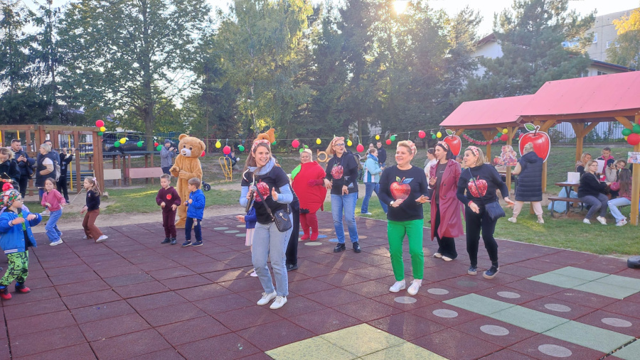 Na uczestników festynu czekało mnóstwo atrakcji, m.in. zabawy sportowe prowadzone przez Klub Sportowy Górnik Konin, malowanie twarzy, dmuchany zamek, loteria fantowa, zdjęcia z jabłkiem gigantem, stoisko z warkoczykami. Festyn uświetnił wspólny taniec przy piosence pt. „Jabłko, jabłuszko” oraz występ absolwentek przedszkola. Miłą atrakcją było również spotkanie z Misiem Teddi Eddie z Open Mind. Wspólnym zabawom towarzyszyły pokazy straży pożarnej oraz policji.