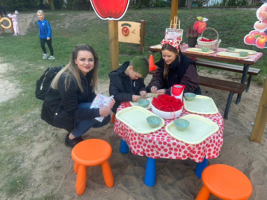 Ogromnym zainteresowaniem cieszyło się również stoisko z ciastami, gdzie można było posmakować wypieków na bazie jabłek przygotowanych przez mamy przedszkolaków. Była też kawa i herbata z cytryną, kompot z jabłek, soki czy napój pełen elektrolitów. Rada Rodziców zorganizowała także licytację, z której zebrany dochód przeznaczony zostanie na doposażenie bazy przedszkolnej.