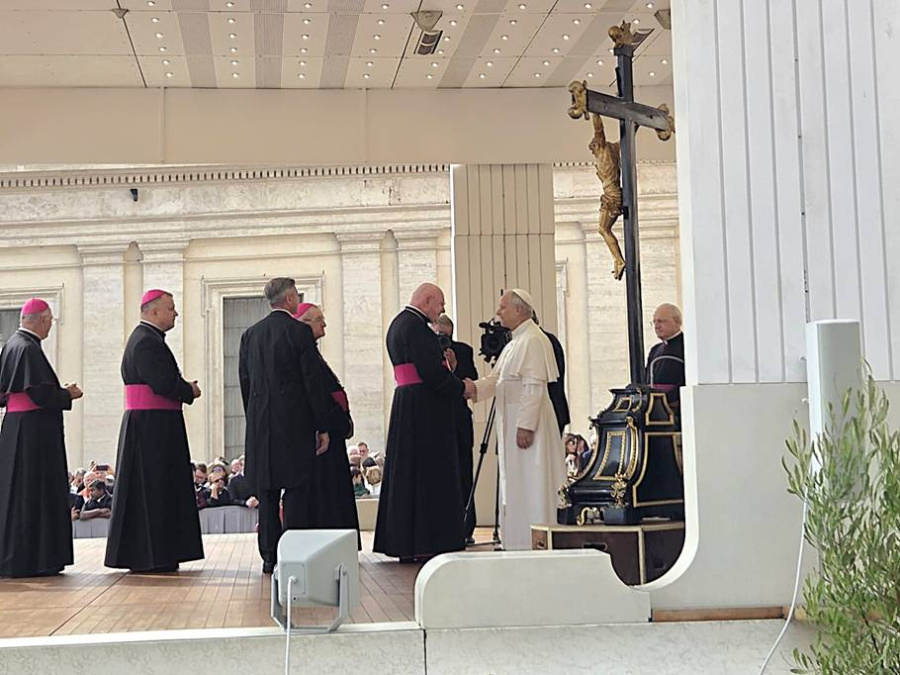 Na audiencji z Ojcem Świętym – jak czytamy w materiale przesłanym do naszej redakcji przez Justynę Zacharek – spotkali się biskup włocławski Krzysztof Wętkowski wraz z biskupem pomocniczym seniorem Stanisławem Gębickim. Biskup Wętkowski podziękował papieżowi za pozdrowienia skierowane do diecezji świętych. Leon XIV słysząc o diecezji św. Faustyny Kowalskiej i św. Maksymiliana Marii Kolbego zareagował z serdecznością. – Wizyta w Watykanie była także okazją do osobistego spotkania pasterza naszej diecezji, bpa Krzysztofa Wętkowskiego z kard. Pietro Parolinem, Sekretarzem Stanu Stolicy Apostolskiej, podczas którego rozmawiano o diecezji włocławskiej i aktualnych wyzwaniach przed nią stojących.
