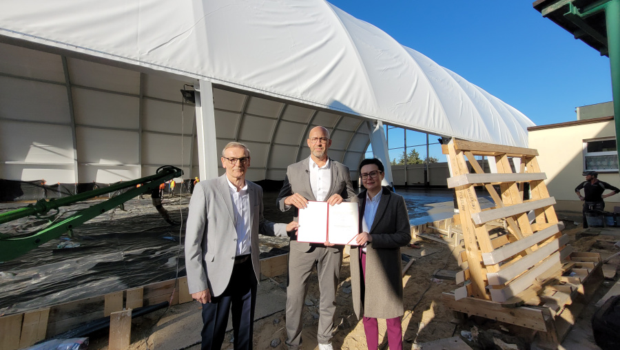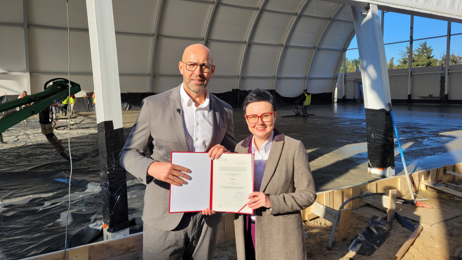Przy Szkole Podstawowej nr 2 w Kole powstaje zadaszone boisko wielofunkcyjne. Umowa na to zadanie została podpisana w lipcu 2023 roku. Jak informuje tablica umieszczona przy placówce, to inwestycja o wartości ponad 6,2 miliona złotych, z czego część to dofinansowanie z budżetu państwa. Miasto Koło teraz otrzymało dodatkowe 905 tysięcy złotych. – Te przyszkolne sale są bardzo potrzebne – mówił Jakub Rutnicki. Dodając, że środki na program Olimpia zostały zwiększone, bo pierwsze szacunki nie do końca odpowiadały rzeczywistym potrzebom. W tej chwili przekazano dodatkowo 100 milionów złotych. – Ta kwota została podzielona proporcjonalnie pomiędzy samorządy, które złożyły aplikacje – mówił minister sportu i turystyki i na ręce wiceburmistrz Koła przekazał właśnie decyzję o dodatkowym wsparciu na to zadanie. – Nie ma nic milszego i fajniejszego, gdy jako minister mogę przekazywać informację o zwiększeniu dofinansowania – mówił Jakub Rutnicki.